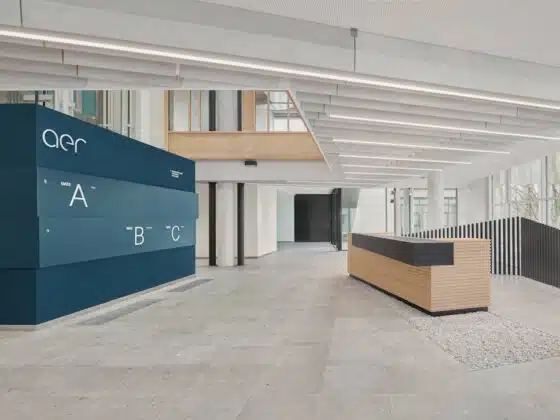 Durch die Umgestaltung des ehemaligen Allianz-Gebäudes in München-Neuperlach gelang es Oliv Architekten, rund ein Drittel mehr Büroflächen zu gewinnen, ohne weitere Flächen zu versiegeln. Damit hat das „aer“ das Potenzial, zur Blaupause für künftige Immobilienentwicklungen in Deutschland zu werden.