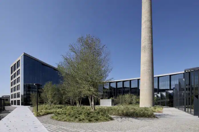 Für das ehrgeizige Stadterneuerungsprojekt „Symbiosis Community District“, das von Covivio auf einem ehemaligen Industriegelände von mehr als 125.000 m² entwickelt wurde, zeichnen ebenfalls ACPV Architects verantwortlich. Das Projekt definiert die Beziehung zwischen Produktionsstätten, öffentlichen Räumen und Umweltinfrastruktur neu, indem es ein städtisches Raster mit einer etwa 1,3 km langen Fußgängerachse zugrunde legt, wobei letztere sowohl als ökologischer Korridor als auch als soziales Instrument dient. Der Masterplan beinhaltet Grünflächen, Wasserspiele, Plätze und Bereiche für temporäre Veranstaltungen. Gleichzeitig integriert er Bürogebäude, Bildungseinrichtungen, Gewerbe- und Gastronomiebetriebe in einem kohärenten und multifunktionalen städtischen Rahmen. Entstanden ist ein „reproduzierbares Modell für den Dialog zwischen dem öffentlichen und dem privaten Sektor, zwischen Natur und Architektur“, wie die Architekten das Konzept beschreiben.